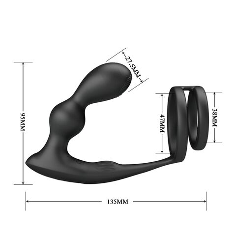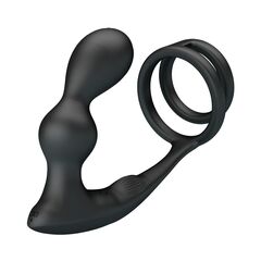 Черный вибростимулятор простаты с фиксацией кольцами