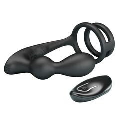 Кольцо с анальным вибростимулятором для двойного удовольствия. Плотно обхватывает пенис и яички, усиливая эрекцию, а пробка с 12 режимами вибрации дарит дополнительную стимуляцию. Пульт управления позволяет менять режимы без рук. Рабочая длина - 7,5 см.