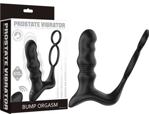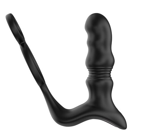 Черный вибростимулятор простаты с поступательными движениями и пультом ДУ. Оснащена 9 скоростями вибрации. Своим строением эта игрушка может одновременно стимулировать несколько зон. Пульт ДУ помогает упросить процесс переключения режимов у игрушки. Рабочая длина - 9 см.