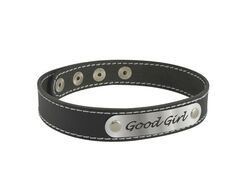 Чокер изготовлен из натуральной кожи и дополнен вставкой под металл с надписью Good Girl. Регулируется при помощи кнопок.