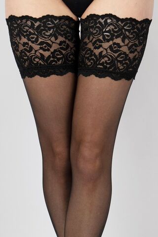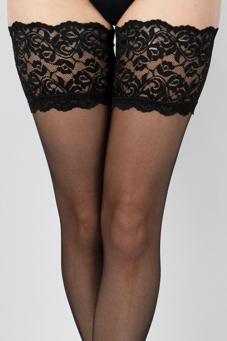 Чулки на широкой ажурной силиконовой резинке. Плотность - 10 ден.