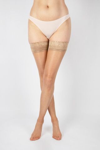 Чулки на силиконе с блеском, красивая кружевная резинка, прозрачный мысок. Плотность - 10 ден.