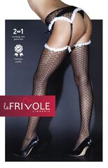 Такие чулки сделают обладательницу дерзкой и кокетливой одновременно: черный рисунок окантован нежнейшей белой тесьмой, что вместе смотрится уж очень эффектно. Для восхищения любимого стоит добавить игривой улыбки и не забыть про искру в глазах. В комплекте: чулки, пояс.