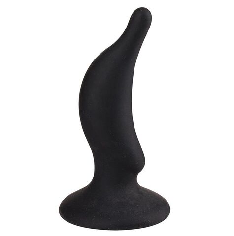 Изогнутый, сужающийся кверху, очень гладкий и упругий, с ограничительным основанием-присоской… О, его потенциал таков, что погружение в анус просто не сможет оставить вас равнодушным!
