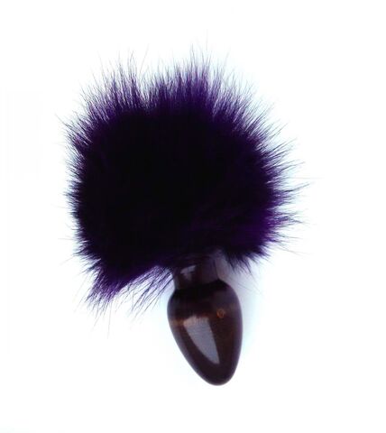 Анальная пробка черного цвета, изготовленная из дерева. Имеет ограничительное основание для безопасного использования. В основании прикреплен тонированный заячий хвостик.