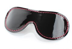 Маска из натуральной кожи на резинке. Можно использовать как двустороннюю: одна сторона выполнена из лаковой кожи черного цвета, а вторая из красной перфорированной кожи, декорирована контрастной красной строчкой. Благодаря эластичной резинке, размер универсальный. Ширина резинки - 2 см.
