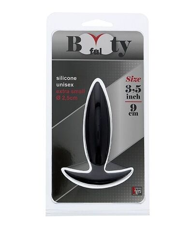 Чёрная мини-пробка для анальной стимуляции BOOTYFUL ANAL PLUG XTRA SMALL BLACK. Из нежного силикона. Удобна для ношения.