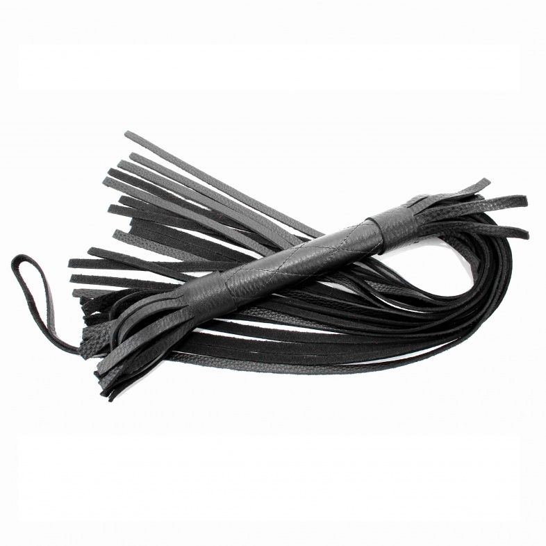 Чёрная плетка из натуральной кожи - 60 см.