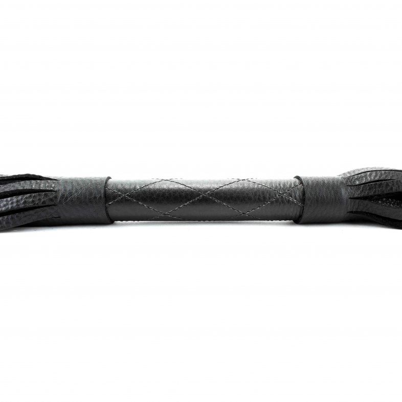 Аккуратная черная плетка, изготовленная из натуральной кожи. Имеет жесткую ручку , также покрытую кожей. Имеется петля для удобного использования плети. Длина хлыстов - 42 см.