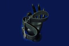 Ременная полоса, соединенная проставкой, с двумя рамками в центре в виде “восьмерки”; не подшитая; с подвижной фиксацией.