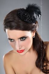Чёрная шляпка с кружевами и перьями. Высота - 4 см.