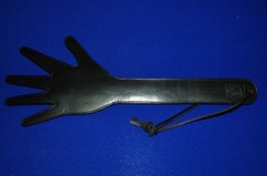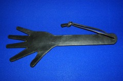 Толстая сдвоенная и прошитая по краю кожаная шлепалка в виде ладони с растопыренными пальцами, усилена пружинистой стальной полосой. Используется для работы по ягодицам и по верхним мышцам внутренней стороны бедра. Проста в применении и безопасна. Во избежании травм не рекомендуется наносить удары ребром.