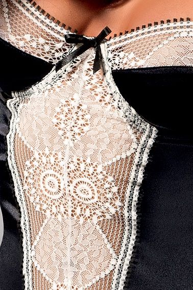 Роскошный корсаж с ажурным лифом и вставкой из нежного итальянского кружева подчеркнёт пленительные изгибы тела.