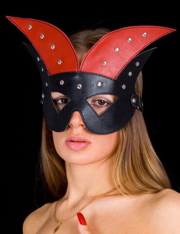 Кожаная фантазийная маска с заклепками и прорезями для глаз.