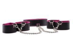 Чёрно-розовый двусторонний комплект для бандажа Reversible Collar / Wrist / Ankle Cuffs