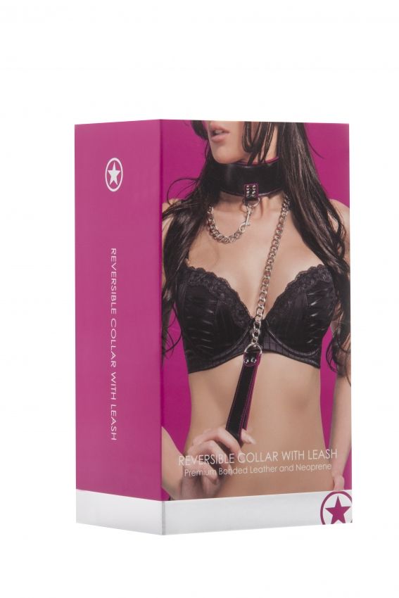Чёрно-розовый двусторонний ошейник с поводком Reversible Collar with Leash