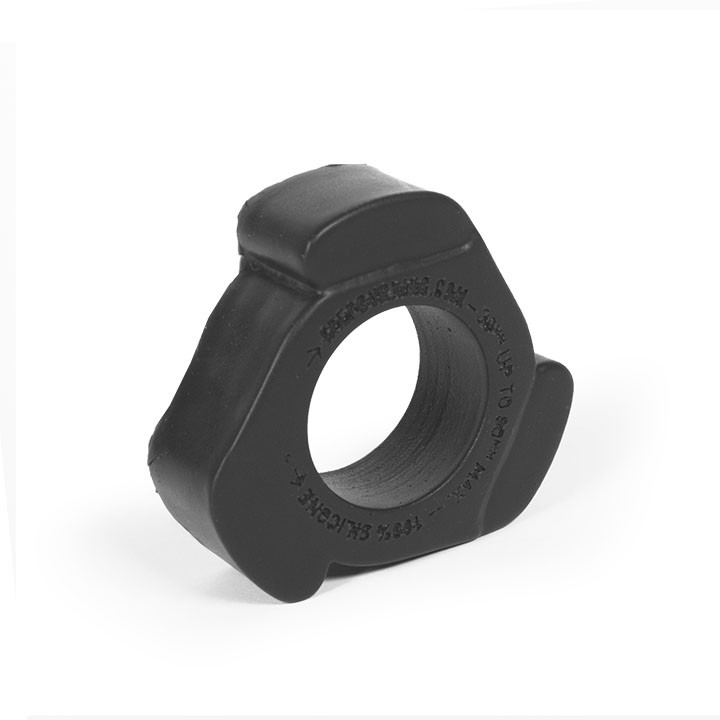 Чёрный силиконовый аксессуар, похожий на фигурную гайку, сослужит вам добрую службу.
