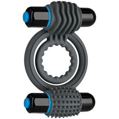 Чёрное эрекционное водонепроницаемое кольцо с двумя съемными вибропулями. Батарейки в комплекте.