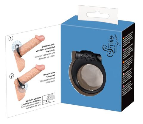 Чёрное виброкольцо для пениса Stayer. Два варианта ношения.
