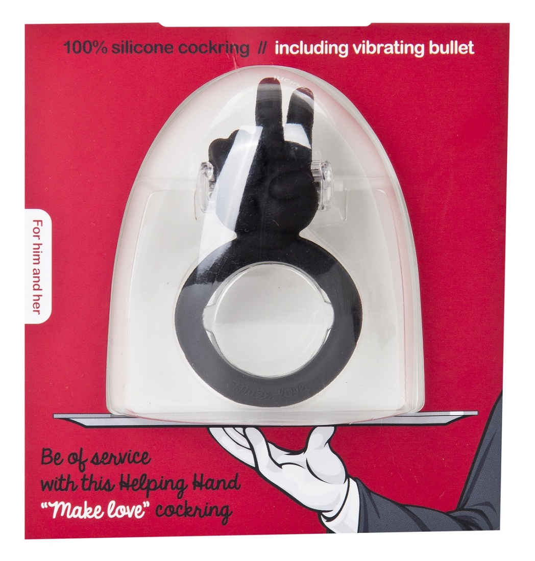 Чёрное виброкольцо на пенис Make Love с ладошкой для стимуляции клитора Батарейки в комплекте.