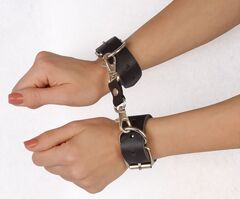 Чёрные наручники Новичок на карабинах. Размер универсальный.