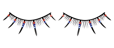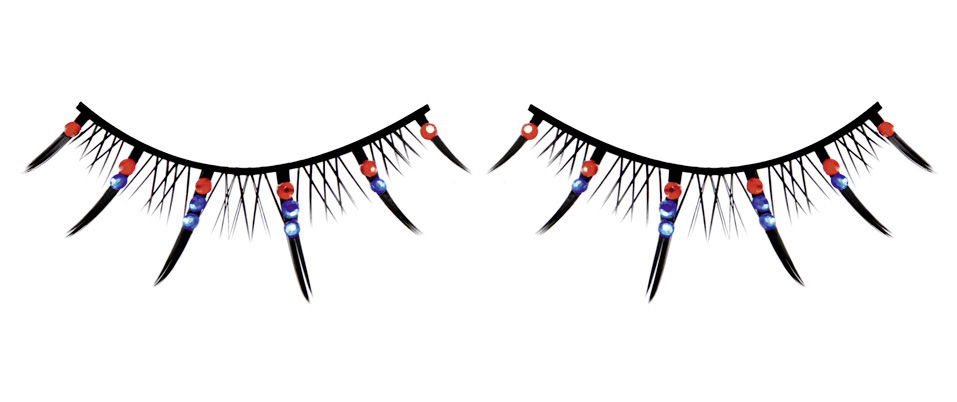 Черные ресницы ручной работы с короткими и длинными ресничками и кристаллами красного и синего цветов. Идеально для выхода, привлечения внимания и флирта. В комплект входит клей для легкого и комфортного прикрепления ресниц.