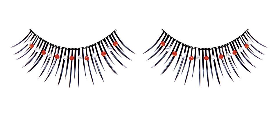 Сенсационные черные длинные ресницы ручной работы с красными и белыми кристаллами. Идеальны для выхода, привлечения внимания и флирта. В комплект входит клей для легкого и комфортного прикрепления ресниц.