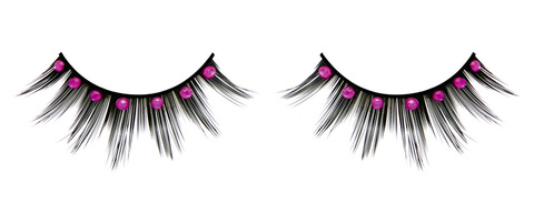 Чёрные ресницы с ярко-розовыми стразами