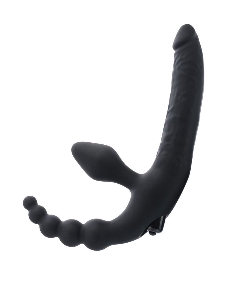 Этот анатомический страпон готов доставить уникальное удовольстие обоим партнерам: его обладательница испытает удовольствие от одновременной вагинальной и анальной стимуляции, а партнер(ша) от проникновения вибратора, расположенного под идеальным углом для достижения высшей точки наслаждения. Рабочая длина - 15 см.