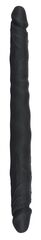 Чёрный двусторонний фаллоимитатор Double Dong Black. Выполнен из силикона, хорошо гнётся. Минимальный диаметр - 2,8 см.