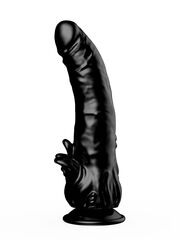Чёрный фаллоимитатор с клиторальными лепестками - 18,5 см.