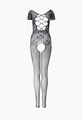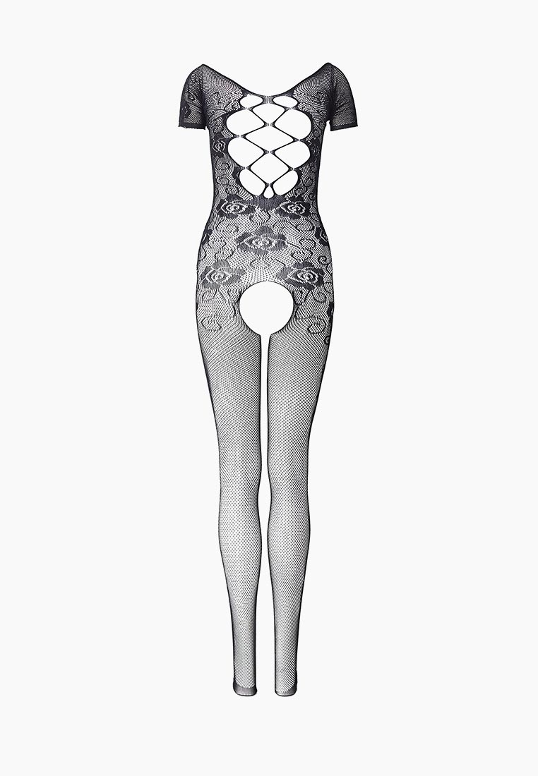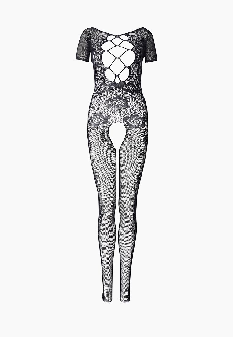 Чёрный комбинезон с красивым цветочным орнаментом. С интимным доступом. Нежный, приятный на ощупь материал позволит вам чувствовать себя комфортно, а уникальный дизайн модели не даст отвести от вас взгляд. Благодаря уникальному пошиву и дизайну боди-комбинезон визуально стройнит фигуру, а также подчеркивает все самые аппетитные части тела. Трусики не входят в комплект!