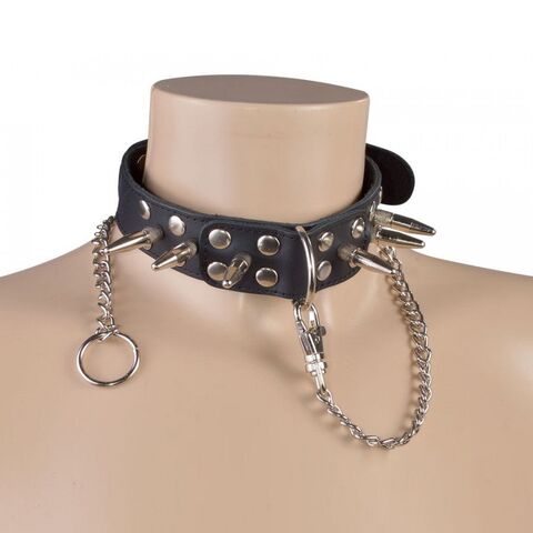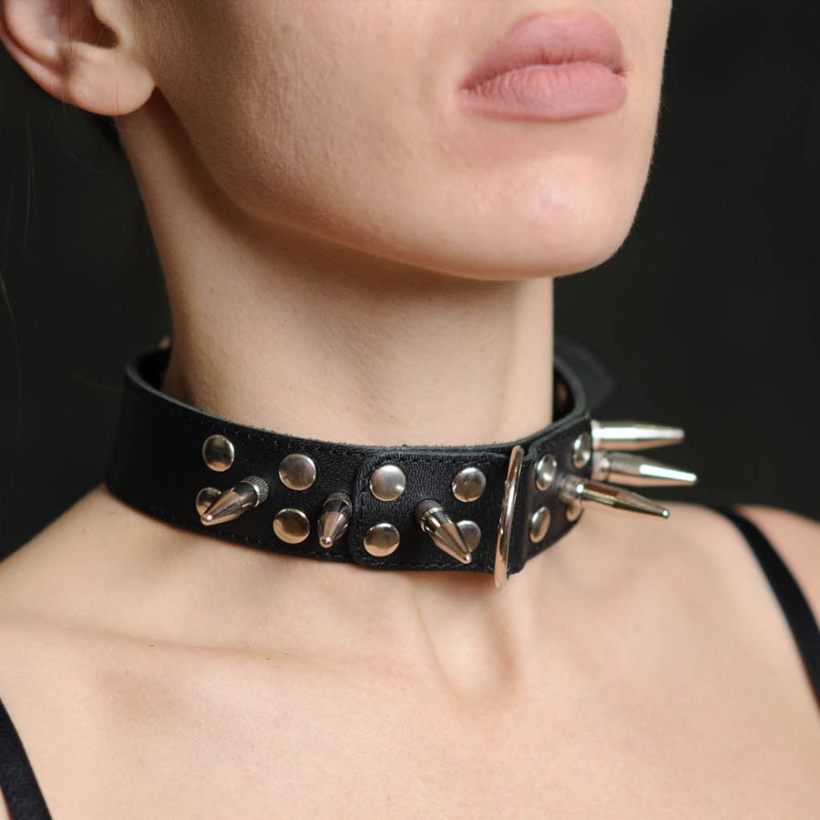 Изготовлен из натуральной кожи с велюровой подкладой. При изготовлении использована никелированная фурнитура. Один из основных атрибутов BDSM. Ширина ошейника - 3 см.