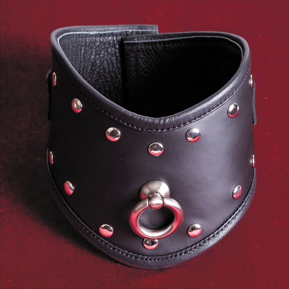 Чёрный кожаный проклёпанный ошейник с кольцом.