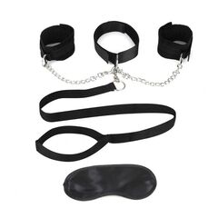 Это то, что нужно каждой любопытной паре. Регулируемый ошейник и мягкие наручники с подкладкой из мягкого материала деликатно удерживают вашего партнера, пока вы доставляете ему удовольствие на привязном поводке. Конструкция оснащена прочным металлическим D-образным кольцом и цепью с быстросъемным зажимом, что позволяет разнообразно играть с наручниками и/или воротником и поводком. Дайте волю своему воображению! В комплекте маска на глаза.