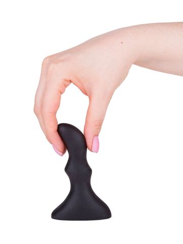 Чёрный плаг причудливой формы – отличная игрушка и для Неё, и для Него. Наплывы на стволе обещают чувственное распирание стеночек, в то время как изогнутый кончик – яркую стимуляцию предстательной железы и дальних уголков попки.