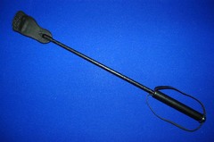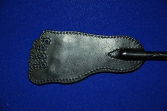 На конце - ударный элемент ввиде ступни, выполнен из натуральной кожи. На рукоятке имеется петля для фиксации руки. Стек при порке используется как правило в области ягодиц. Гибкий сердечник и кожаная оплетка позволяют избежать травмирования кожи, оставляя при этом ощущения как при порке жесткими розгами. Также стеки используются в играх pony-play или могут служить элементом управления и наказания нижнего. Это своеобразный символ власти, который добавляет страха и яркости ощущений у нижнего партнера.
