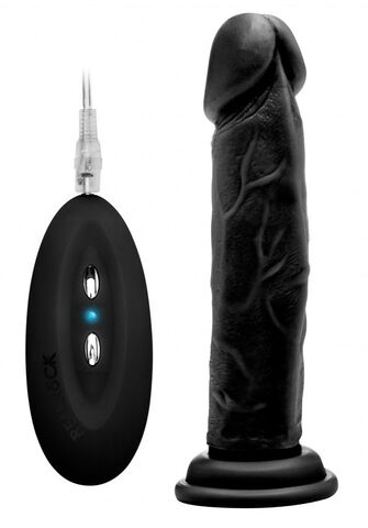 Чёрный вибратор-реалистик Vibrating Realistic Cock 8 . С присоской в основании для фиксации на плоскости. 10 режимов вибрации. Проводной пульт управления.
