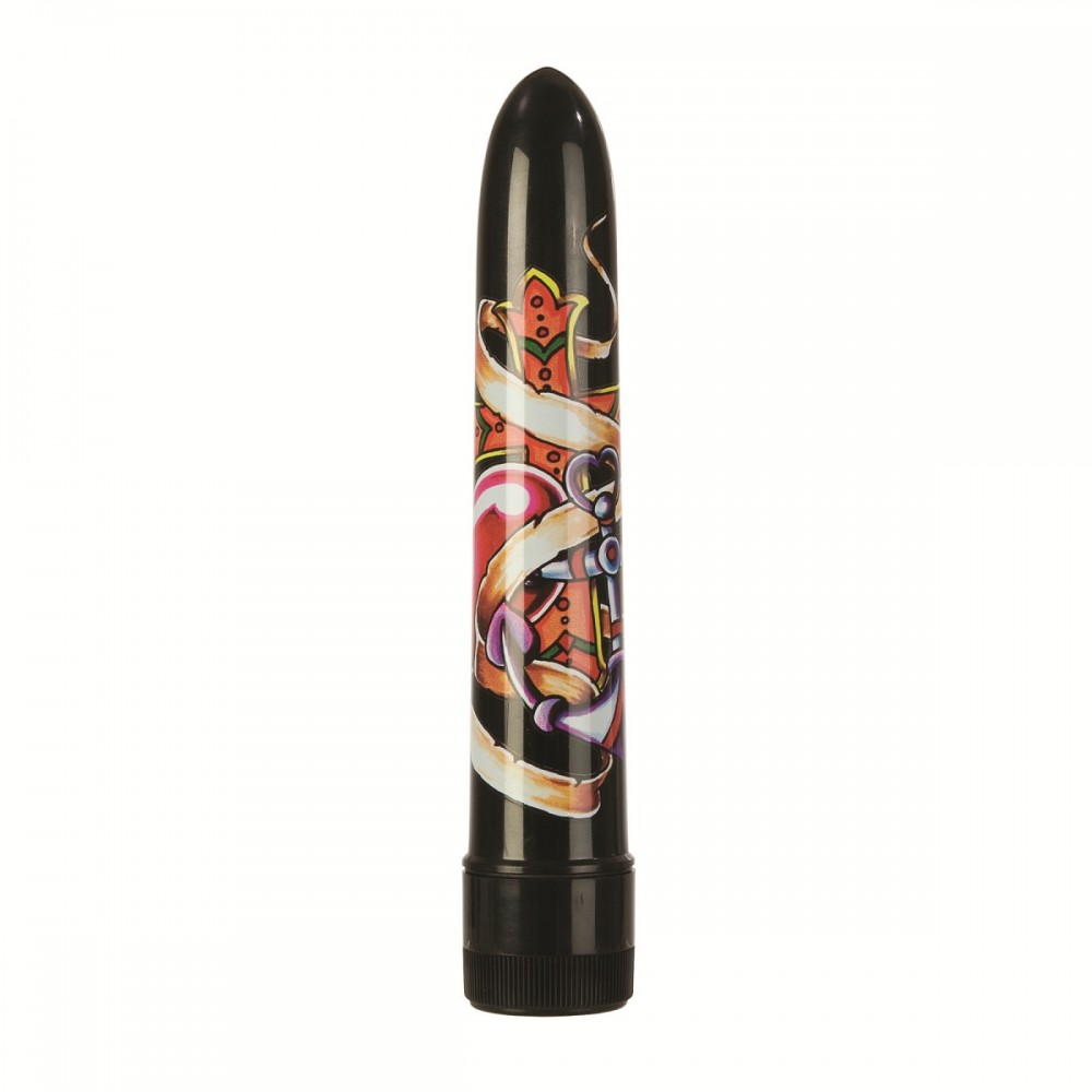Чёрный вибратор с принтом Inked Vibes - 16,5 см.