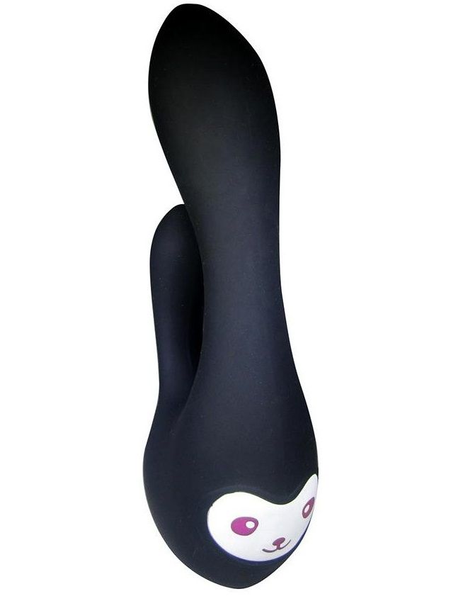 Чёрный вибратор Shimoji Panda Bear с клиторальным отростком - 14 см.