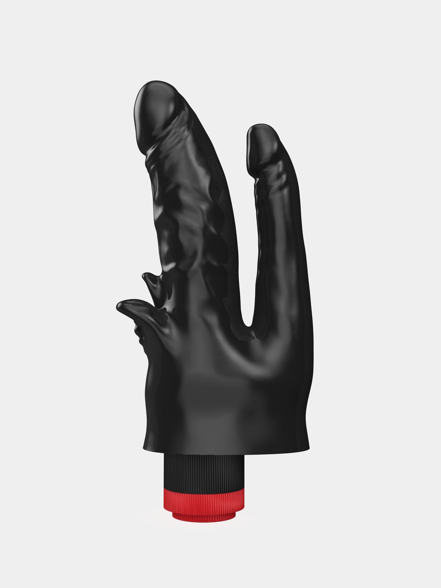 Этот вибромассажёр чёрного цвета, выполненный из упругого и приятного на ощупь поливинилхлорида, отличается от конкурентов своей многофункциональностью. По сути, это два вибратора, слившихся у основания и дополненных мяконькими лепестками для клиторальной стимуляции.