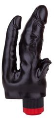 Чёрный вибромассажёр с двумя стволами и лепестками - 17 см.