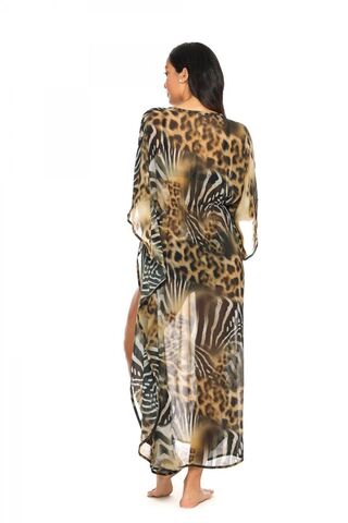 Длинная пляжная туника-кимоно с принтом зебры и леопарда