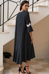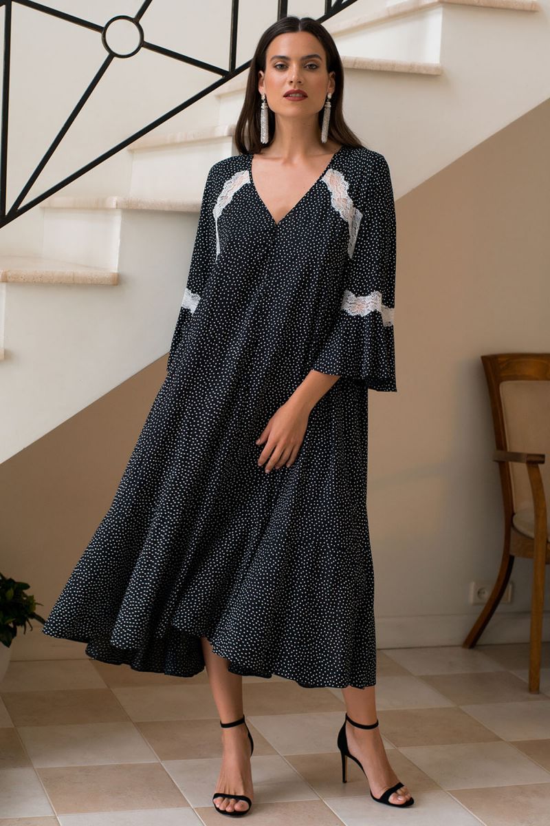 Роскошная домашняя туника свободного кроя выполнена из натуральной вискозы высокого качества. V-образный вырез горловины подчеркнет красивую область декольте. Полочки и рукава туники декорированы изумительными кружевными вставками. Стильный фасон, мягкость ткани и красивый декор создают элегантный образ, подчеркнут Вашу красоту, женственность и чувство стиля.