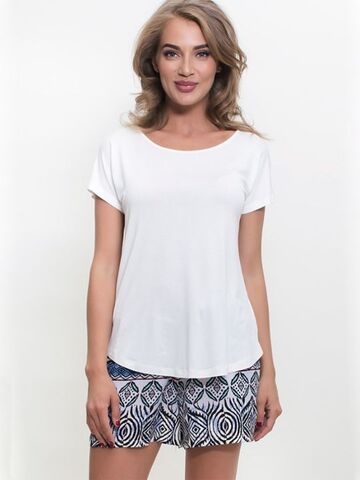 Комплект с шортами из вискозной ткани и трикотажной футболкой с короткими рукавами. Футболка с круглым вырезом. В комплекте: футболка, шорты.