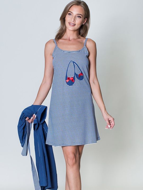 Трикотажный комплект - халат на запахе с поясом, рукав 3/4, однотонный, туника на бретельках, с рисунком. В комплекте: халат, туника.