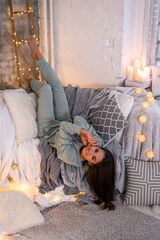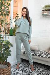 Домашний костюм Carlota состоит из кофты и брюк. Кофта свободного кроя с длинными рукавами. Брюки зауженного кроя, пояс на широкой мягкой резинке. Идеальный вариант для домашнего отдыха. В комплекте: кофта, брюки.