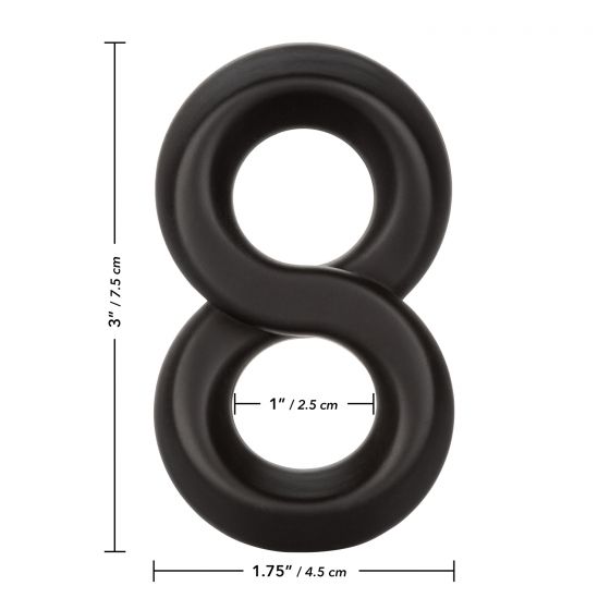 Эрекционное кольцо Crazy 8 – устройство, предназначенное для поддержания эрекции. Кольцо выполнено в виде восьмерки, за счет чего его можно использовать, как для усиленной двойной фиксации на стволе пениса, так и дополнительно на мошонку. Изготовлено из очень эластичного, ультра нежного, бесшовного двойного силикона, что обеспечивает не только растягивание до нужного размера, но и приятные тактильные ощущения.