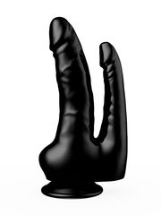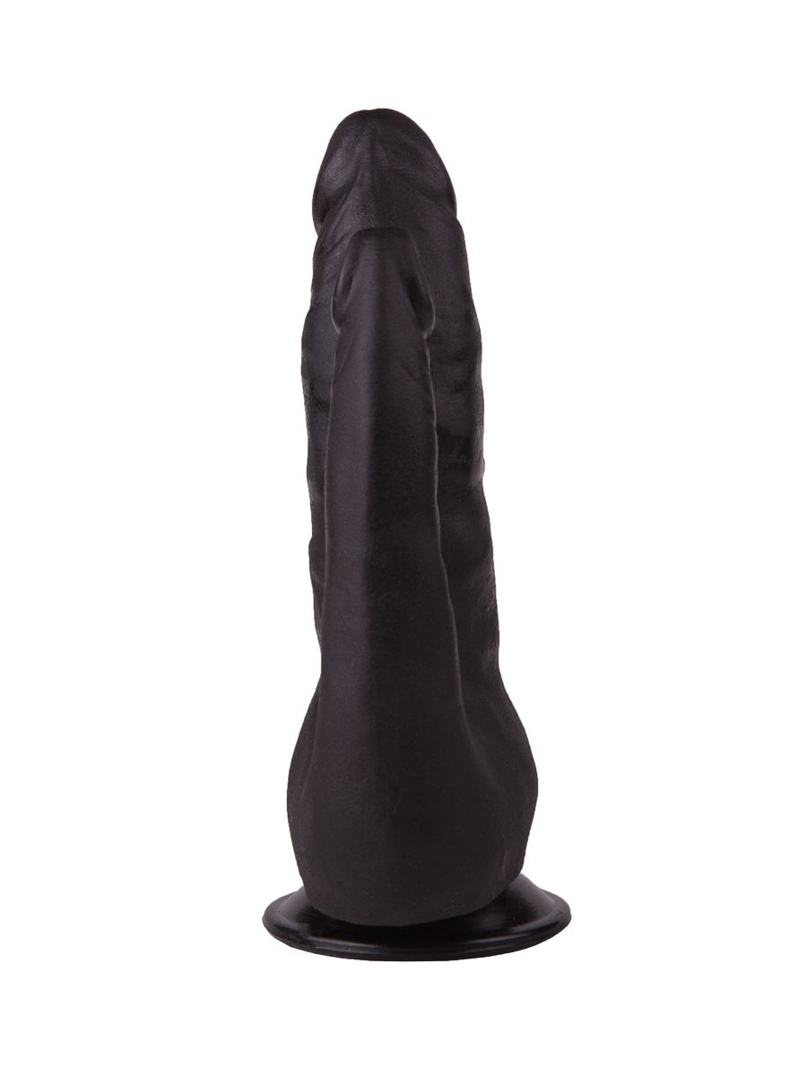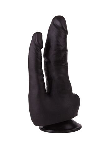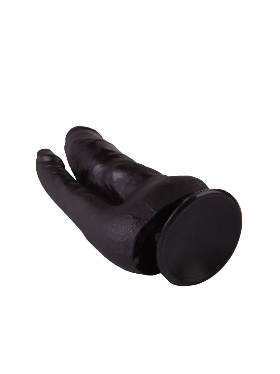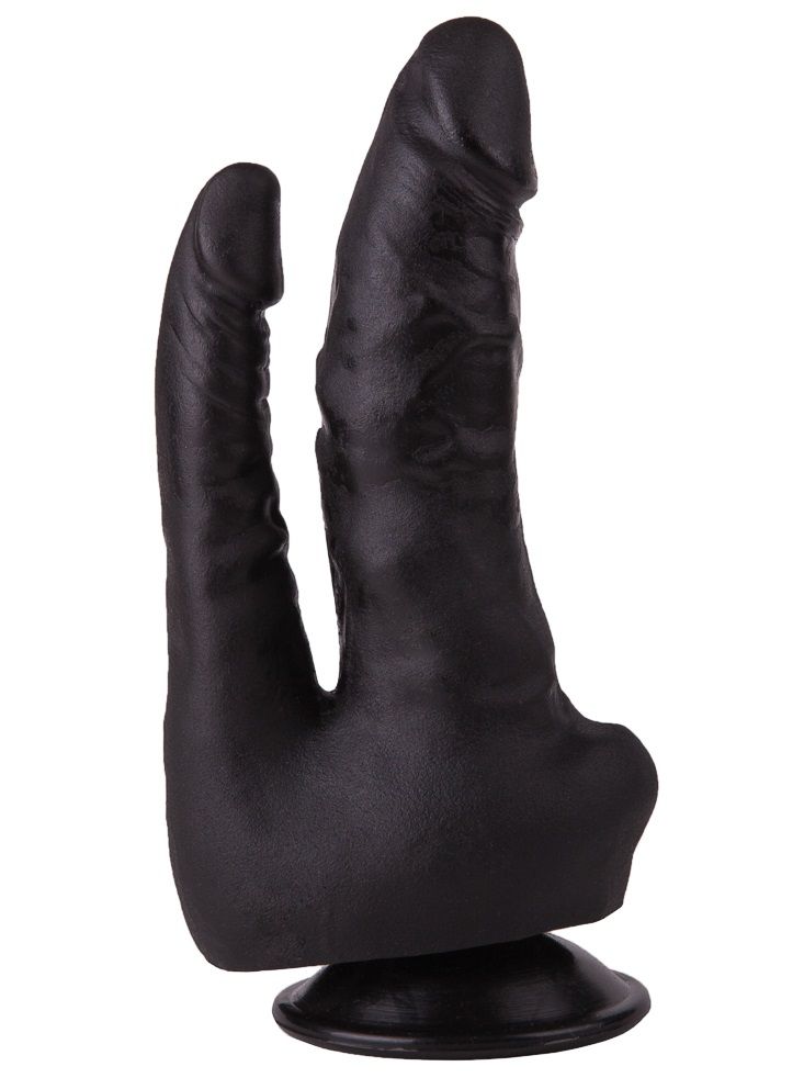 Двойной фаллоимитатор чёрного цвета на присоске - 17 см.