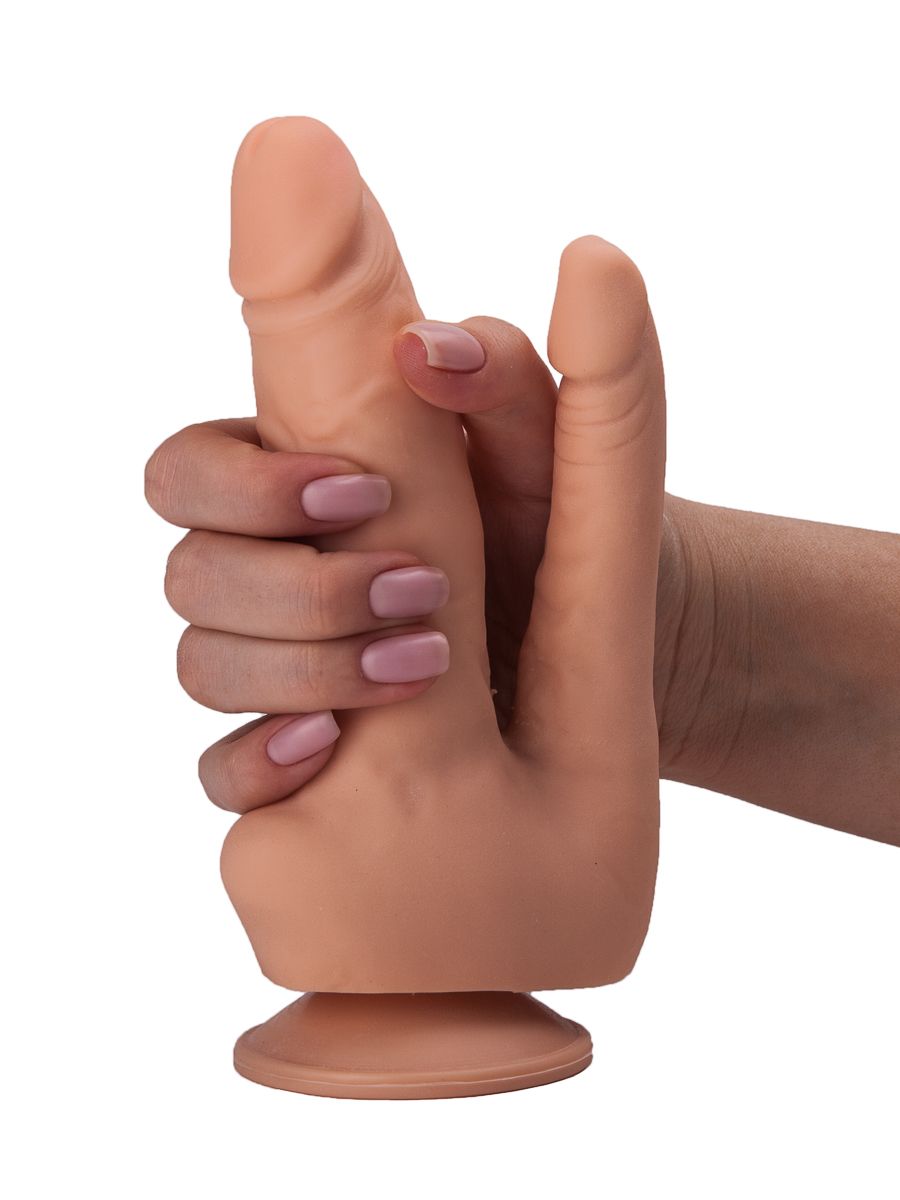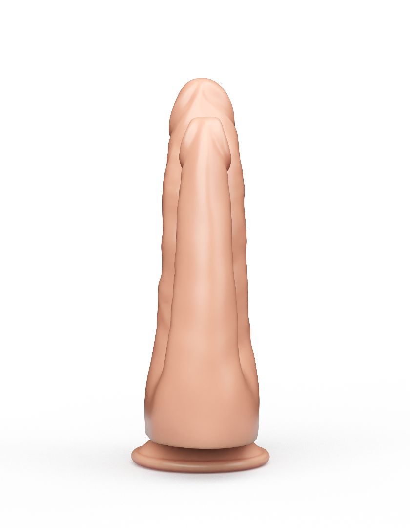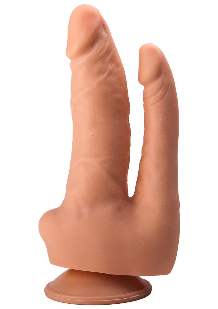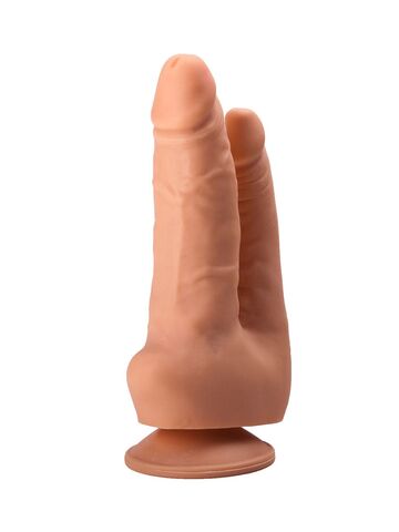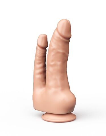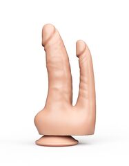 Этот бежевый стимулятор из бархатистого на ощупь материала – ваш ключик к двойному наслаждению. Секс-игрушка с подошвой-присоской представляет собой слившиеся у основания фаллосы – крупный и тонкий.